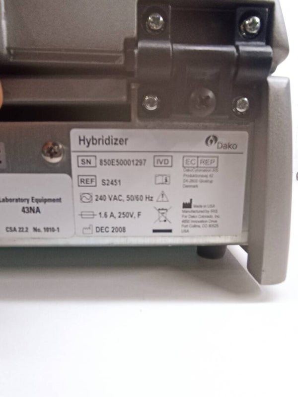 Le Daco Hybridizer est un appareil automatique utilisé pour la dénaturation et l'hybridation d'échantillons histologiques et cytologiques sur lames de verre pour les méthodes FISH et CISH. L'utilisation d'un hybrideur réduit le nombre de manipulations manuelles, ce qui augmente l'efficacité et la reproductibilité des résultats par rapport aux réactions d'hybridation manuelles in situ. L'appareil est conçu pour 12 lames de verre. L'hybrideur est optimisé pour une utilisation avec les kits Dako DNA et PNA FISH et CISH. Pour maintenir une humidité élevée pendant le processus d’hybridation, les bandes de contrôle de l’humidité sont spécialement conçues. Ils sont constitués d'un polymère hydrophile fibreux spécial avec une grande surface et sont capables d'absorber et de libérer rapidement l'humidité. L'hybrideur peut être intégré dans un système avec une machine de coloration du verre Dako, formant ainsi un seul laboratoire histochimique.